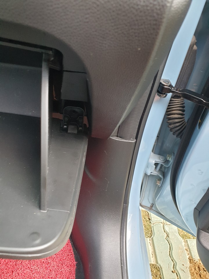 글러브박스를 탈거 후 안쪽의 모습인데요 사진 왼쪽은 덮개가 덮혀있는 상태고,