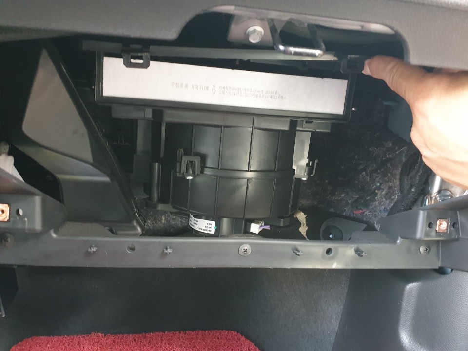 그럼 요렇게 글로브박스가 완전히 탈거된답니다. 여기까지 하셨다면 거의 다 하신거예요!! 누구나 다 할 수 있어요!