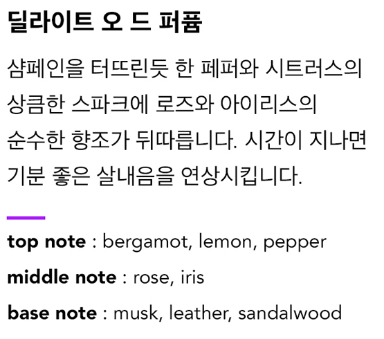 내가 딜라이트를 고른 이유가 바로 머스크와 샌달우드의 조화 때문임!!